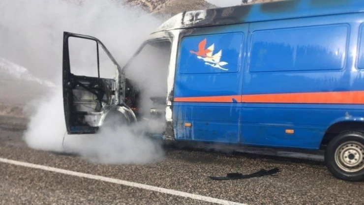 Kargo aracı cayır cayır yandı