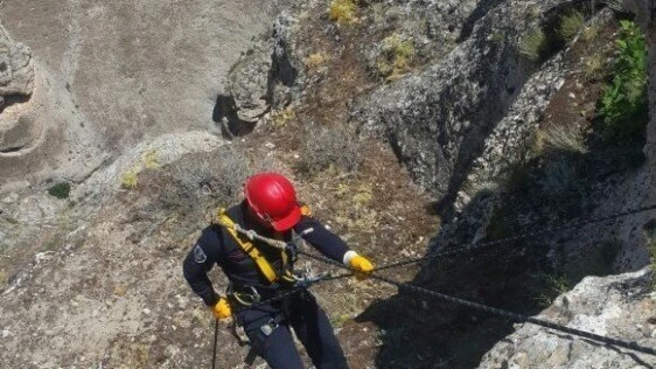 Halat yardımı ile kayalıklardan aşağı inen ekipler mahsur kalan 3 keçiyi yaklaşık 2 saatlik bir çalışma ile kurtardı. İki günlük esaretin ardından keçilerine kavuşan vatandaş itfaiye ekiplerine teşekkür etti.