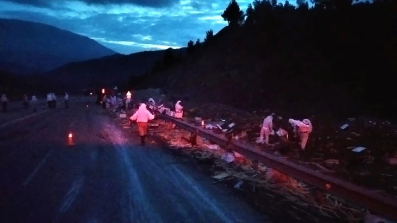 Kaza, gece geç saatte Adıyaman’ın Gölbaşı ilçesine bağlı Ozan köyü yakınlarında meydana geldi. Adana istikametinden Bingöl’e giden Sezgin Doğan yönetimindeki 44 EJ 206 plakalı kamyon sürücüsünün direksiyon hakimiyetini kaybetmesi sonucu devrildi. Yaklaşık 300 metre kadar sürüklenen kamyon bariyerlere çarparak durabildi.