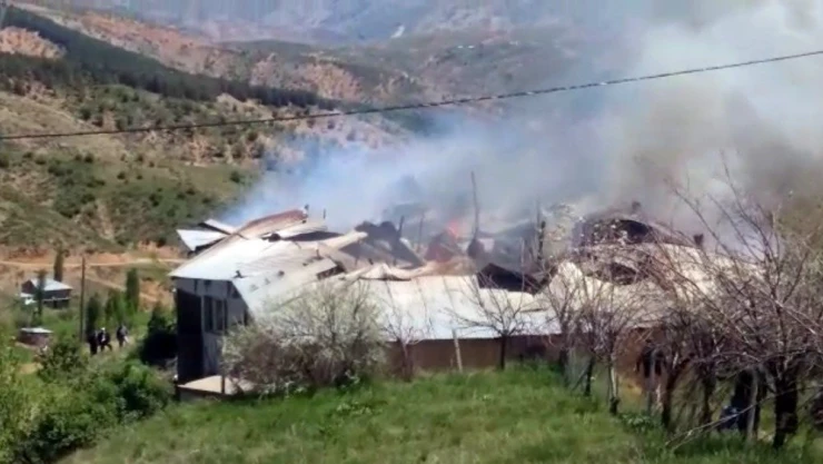 Malatya'nın Pütürge ilçesinde çıkan yangında birbirine bitişik 3 ev kullanılamaz hale geldi.