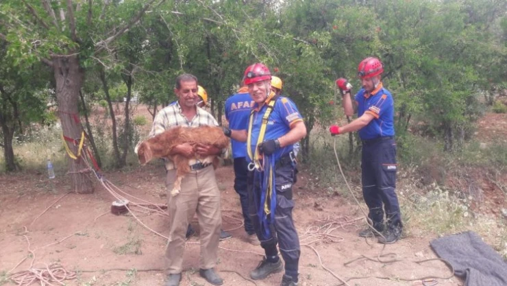Adıyaman'da, 15 metre derinlikteki kuyuya düşen keçi, AFAD ekiplerince sağ salim kurtarıldı.