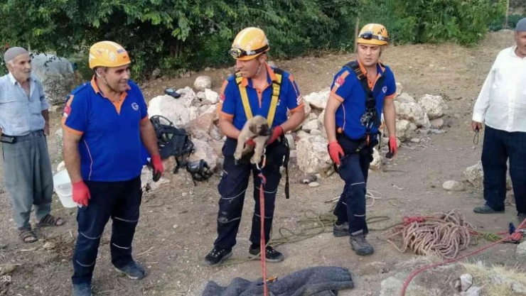 Adıyaman'da, su kuyusuna düşen yavru köpek, AFAD ekiplerince kurtarıldı.