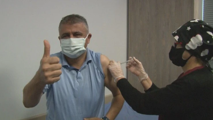 Malatya Eğitim ve Araştırma Hastanesi'nde 100 bininci Covid-19 aşısı, Başhekim Prof. Dr. Erdal Aktürk'e yapıldı.