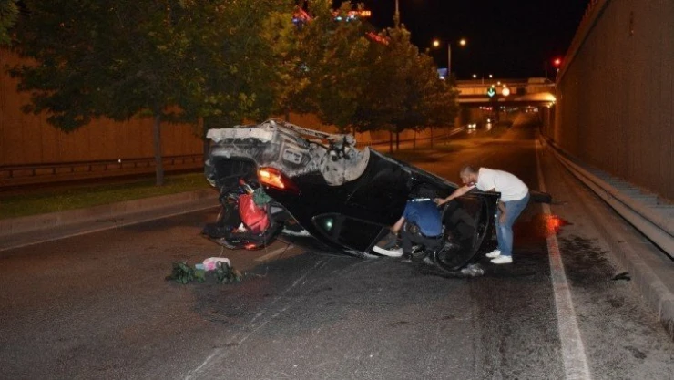 Malatya'da alt geçitte refüje çarptıktan sonra önünde seyreden araca çarpan otomobil takla atarak savruldu. Kazada 2 kişi ağır şekilde yaralandı.
