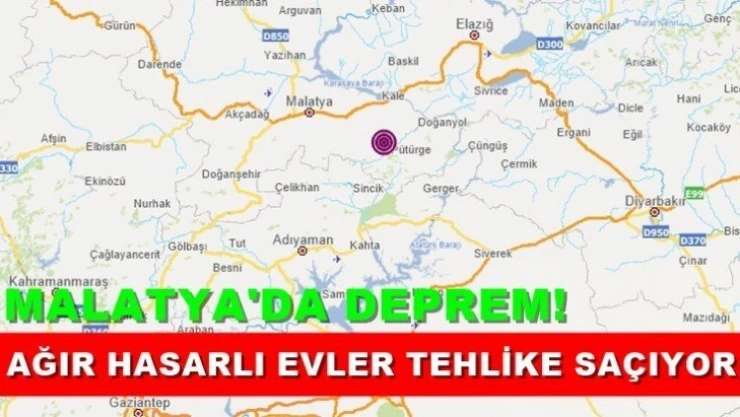 Malatya'da saat 12:37'de 5,7 büyüklüğünde deprem meydana geldi. Elazığ Sivrice depreminden sonra üç ilçede ağır hasar raporu almış evler tehlike saçıyor.