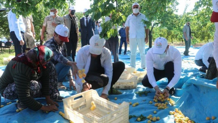 Malatya Valisi Aydın Baruş, Battalgazi ilçesi Yarımcahan Mahallesi'nde ünü ülke sınırlarını aşan Malatya kayısısının hasadına katıldı ve kayısı topladı.