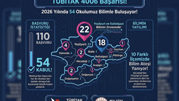 TÜBİTAK tarafından genç beyinleri düşünmeye, gözlem yapmaya ve merak etmeye teşvik etmek amacıyla düzenlenen 4006 Bilim Fuarları Programı'nın sonuçları açıklandı. Malatya, başvuru yapan okulların kabul oranındaki yüksek başarıyla dikkatleri üzerine çekti.