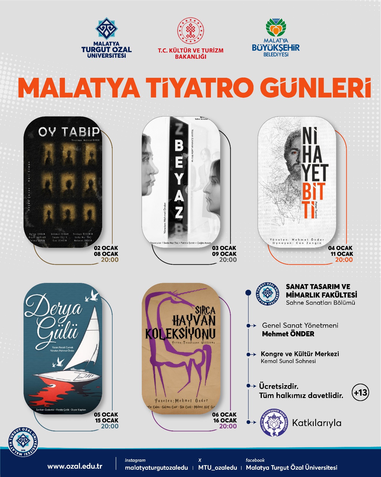 Malatya Turgut Özal Üniversitesi Sanat Tasarım ve Mimarlık Fakültesi Sahne Sanatları Bölümü öğrencilerinin hazırladığı dünya tiyatro repertuarının önemli yazarlarının beş oyununun Malatya halkı ile buluşacağı Malatya tiyatro günleri serinin ilk oyunu Oy Tabip isimli tiyatro gösterisi ile başladı.