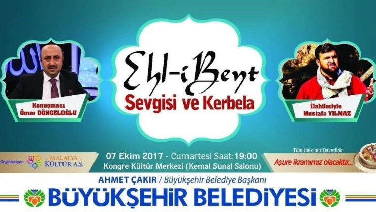 Malatya Büyükşehir Belediyesi Kültür A.Ş tarafından Ehl-i Beyt Sevgisi ve Kerbela adlı program düzenlenecek.