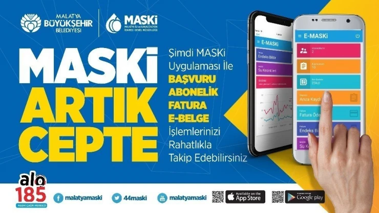 MASKİ Genel Müdürlüğü yapılan yatırımların ve çalışmaların vatandaşlara sunumunu, MASKİ Resmi Web Sitesi, sosyal medya, yazılı ve görsel basın üzerinden haber, duyuru ve bilgi paylaşımları şeklinde yapıyor. Bu uygulamaların yanı sıra MASKİ Mobil Uygulamasını hayata geçirerek vatandaşların MASKİ’nin hizmetlerine daha kolay ulaşmasını sağlıyor. Malatyalıların MASKİ’ye ait birçok işlemi mobil cihazlar üzerinden kolayca yapabileceğini ifade eden Genel Müdür Dr. Özgür Özdemir, "Vatandaşlarımız IOS ve Android platformlu cihazların MASKİ Mobil Uygulamasını kullanarak, MASKİ’ye ait her şeye daha kolay ve hızlı ulaşabilirler. Uygulama ile endeks bildir kısmına sayaç üzerindeki son endeksi girerek faturasını oluşturarak su borçlarını ödeyebilir, fatura geçmişlerini kontrol edip, geçmiş borçlarını ödeyebilir ve aboneliklerini takip edebilirler. Ayrıca arıza bildirimi yapabilir, istek, öneri ve şikayetlerini iletebilir, dilekçe başvurularının takibini yapabilirler. Vatandaşlarımız MASKİ Mobil uygulamamızda su kesintilerinin anlık görebilirler. Ücretsiz olan bu uygulama ile MASKİ vatandaşımıza kolaylık sağlıyor. Uygulamayı kullanmak isteyenvatandaşlarımız, Anroid işletim sistemli cihazlar için Google Play Markete, IOS işletim sistemli cihazlar için AppStore Markete girerek uygulamayı akıllı cihazlarına yükleyebilirler” dedi.