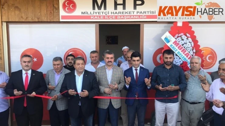 Burada konuşan MHP İl Başkanı Avşar, “Kale ilçe teşkilatımızın açılışını gerçekleştirmek üzere buradayız. Milletvekilimiz Mehmet Fendoğlu, Battalgazi İlçe Başkanımız Mesut Samanlı, ülkü Ocakları Malatya İl Başkanı ve Kale Belediye Başkanı Murat Koca ile birlikte Kale İlçe teşkilatımızın yeni hizmet binasının açılışını gerçekleştirdik. İlçe başkanımız Mustafa Avcı beyefendiye, yönetimine ve emeği geçen herkese teşekkürlerimi sunuyorum.” ifadelerini kullandı.