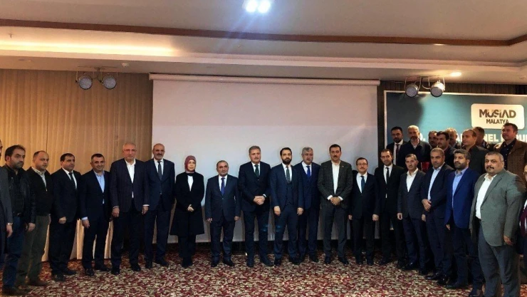 Malatya Şube’nin yeni Başkanı Muharrem Poyraz ise derneğin bölgesinde etkin, dünyada saygın bir güç olduğunu dile getirerek “Türkiye için yola çıkan hassasiyet sahibi iş adamlarımızın 9 Mayıs 1990 yılında İstanbul’da kurulan bir işadamları derneğidir. Kişilerin ve kurumların, ülkemizin ve toplumumuzun, bölgemizin ve dünyanın, sosyal ve kültürel, siyasal ve ekonomik, bilimsel ve teknolojik kalkınmasına katkıda bulunmak amacıyla oluşturulan gelişim, diyalog, işbirliği, güç birliği tablosudur. Derneğimiz hamd olsun 11 bini aşkın üyesi ile 60 bine yakın işletmeyi temsil eden, yaklaşık 1 milyon 600 bin kişiye istihdam sağlayan ve yurt içinde 86 irtibat noktası bulunan bir kuruluş. Üyelerimizin sorunlarını, görüş ve önerilerini, kamu kurum ve kuruluşlarına yerinde ileten MÜSİAD yurt dışında farklı 78 ülkede toplam 208 noktada hizmet veren bir oluşum. Sadece iş dünyasına değil, diğer kesimler için de örnek ilim rehberliği ve danışmanlık merkezi haline gelen uygulama ve çalışmalarını profesyonel düşünce zeminine oturan, birikimini paylaşımına açan, kamu yararına dernek statüsüne sahip güçlü bir sivil toplum kuruluşudur. Biz dünyanın en yaygın ve en etkin STK’sıyız diyoruz” diye konuştu.
