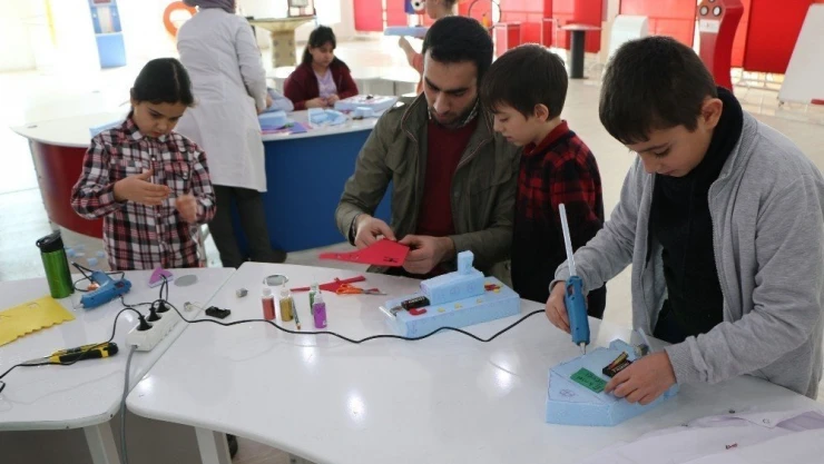 Elazığ'da öğrenciler gruplar halinde yarı yıl tatilinde de bilim merkezinde bilimsel atölye çalışmalarına katılıyor.