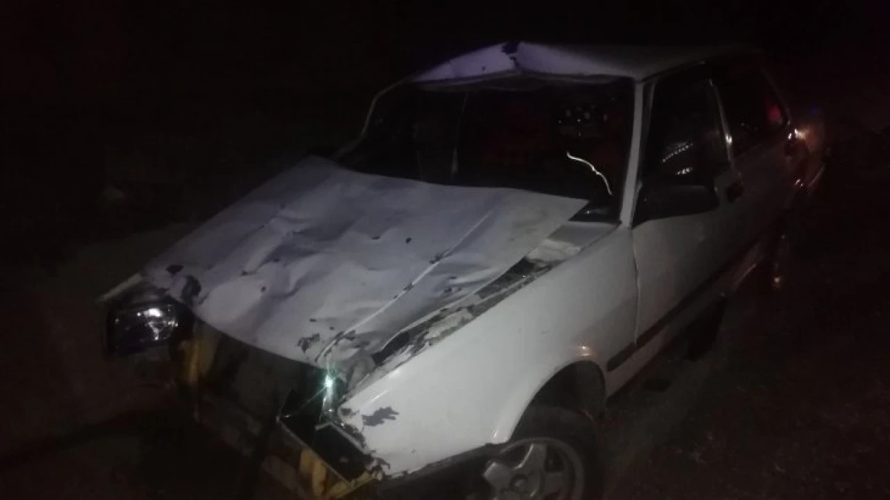 Adıyaman'ın Gölbaşı ilçesinde karayolunda başıboş gezen ata çarpan otomobildeki 2 kişi yaralandı.