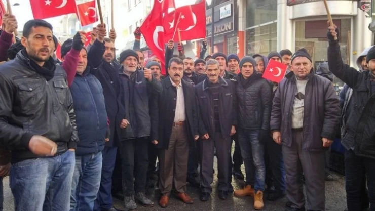 Pazar önünde toplanan kalabalık grup ellerindeki bayraklarla ‘Kahrolsun PKK’ ve ‘Şehitler ölmez vatan bölünmez’ sloganları atarak bölücü terör örgütü PKK’yı lanetledi.