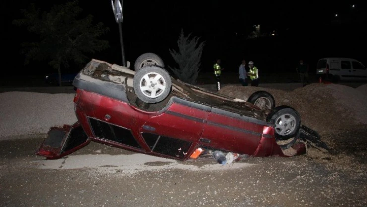 Refüje çarpan otomobil takla attı, sürücü yaralı kurtuldu