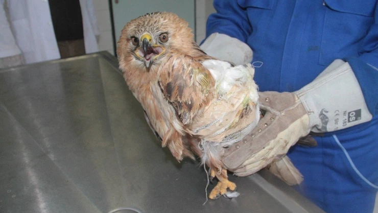 Saçmaların hedefi olan 'şahin' tedavi altına alındı