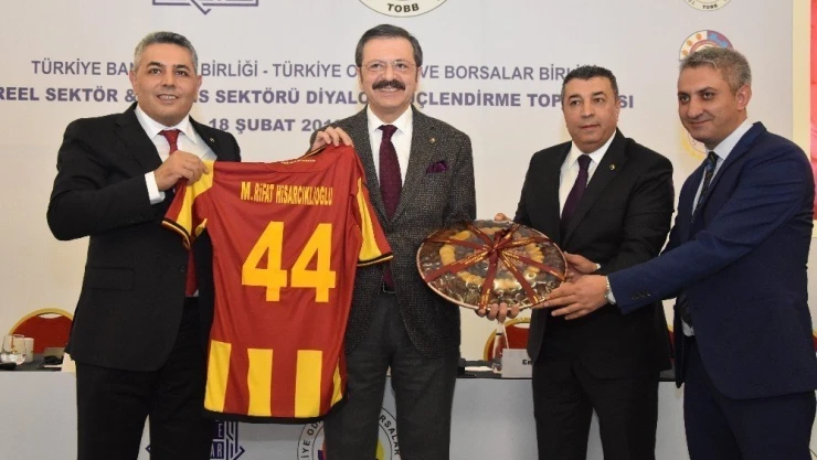 Malatya Ticaret ve Sanayi Odası ile Malatya Ticaret Borsası’nın ev sahipliği yaptığı “Reel Sektör ile Finans Sektörü Diyalog Güçlendirme Toplantısı”nda Türkiye Odalar ve Borsalar Birliği (TOBB) Başkanı Rifat Hisarcıklıoğlu, Türkiye Bankalar Birliği Başkanı ve Ziraat Bankası Genel Müdürü Hüseyin Aydın ile Halkbank Genel Müdürü Osman Arslan; Malatya ve çevre şehirlerdeki iş dünyasının sorunlarını dinlediler.