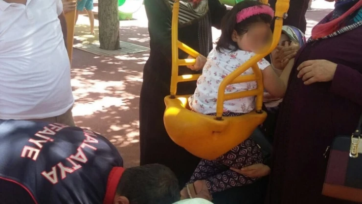 Malatya'da oyun parkında salıncağa sıkışan çocuğu itfaiye ekipleri kurtardı.