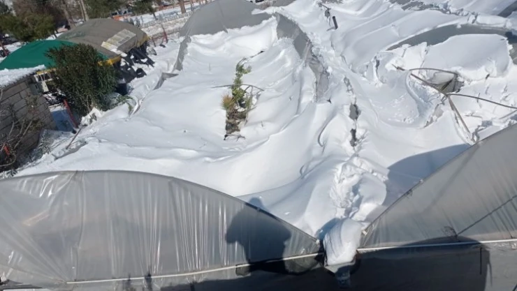 Adıyaman'da yoğun kar yağışı sonrasında sera yıkılınca binlerce fidan zarar gördü.