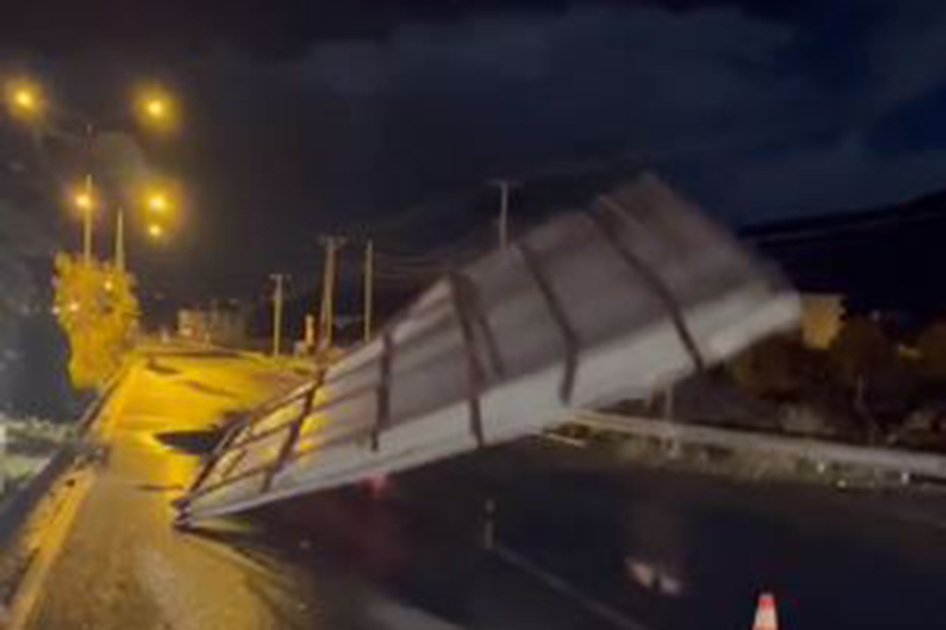 Malatya’da akşam saatlerinden beri etkili olan şiddetli fırtına, bir işyerinin çatısını yerinden sökerek yola savurdu.