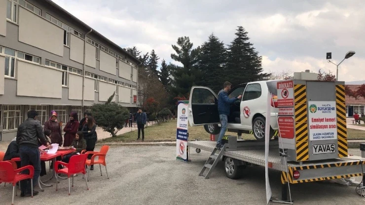 Malatya Büyükşehir Belediyesi tarafından İnönü Üniversitesi öğrencilerine simülasyon aracı ile uygulamalı emniyet kemeri eğitimi verildi.