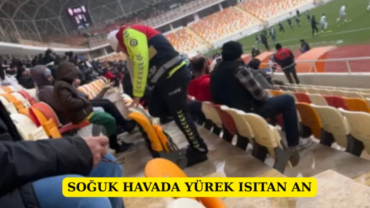 Malatya Yeni Stadyumu'nda oynanan Yeşilyurtspor–12 Bingölspor karşılaşmasında, trafik polisinin üşüyen minik taraftara kendi çoraplarını giydirmesi tribünlerde duygusal anlar yaşattı.