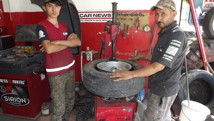 Yeşilyurt ilçesine bağlı Dilek Mahallesinde yaşanan olayda otomobil lastiği dükkanı işleyen Bekir Ekici, oğlu Enes Ekici ile birlikte bir otomobil patlayan lastiklerini değiştirdi. Lastiği onaran baba oğul daha sonra lastiği hava vurulması için makineye taktı.
