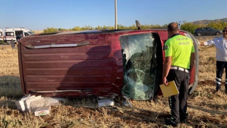 Malatya'da kontrolden çıkan hafif ticari araç, yol kenarındaki tarlaya uçtu. Yan yatan aracın sürücüsü kazayı burnu bile kanamadan atlattı.
