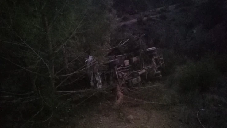 Tekeri patlayan kamyonet takla atıp şarampole uçtu