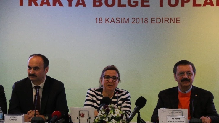 Öte yandan, Edirne’de Ticaret ve Sanayi Odası Konferans Salonu’nda düzenlenen Trakya Bölge Toplantısı’na Edirne Valisi Ekrem Canalp, TOBB Başkanı M. Rifat Hisarcıklıoğlu, Türkiye Esnaf ve Sanatkarları Konfederasyonu (TESK) Başkanı Bendevi Palandöken, Türkiye İhracatçılar Meclisi (TİM) Başkanı İsmail Gülle, Edirne Ticaret ve Sanayi Odası Yönetim Kurulu Başkanı Recep Zıpkınkurt, Edirne Ticaret Borsası Başkanı Özay Öztürk, Edirne, Tekirdağ ve Kırklareli’de faaliyet gösteren iş insanları ve STK temsilcileri katıldı.