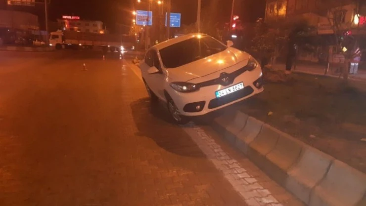 Adıyaman'ın Gölbaşı ilçesinde virajı alamayan otomobil refüje çıktı.