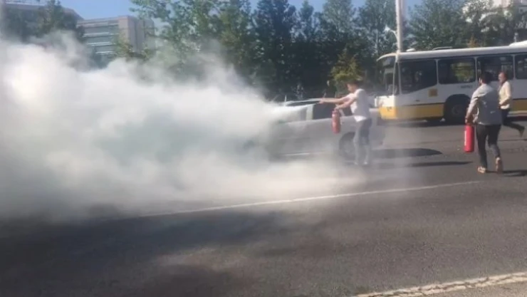 Malatya'da seyir halinde iken aniden alev alarak yanmaya başlayan aracın sürücüsü canını son anda kurtarırken, yangın çevredeki vatandaşların müdahalesiyle söndürüldü.