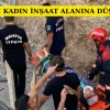 Yaşlı kadın inşaat alanına düştü