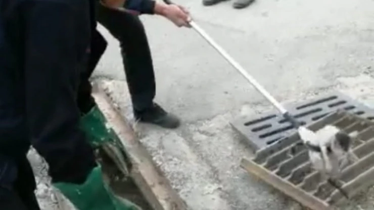 Yavru kedi mazgallardan drenaj kanalına düştü