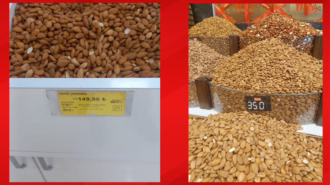 Muhtemelen birinci resim yani kayısı çekirdek fiyatı 149,90 TL olan Malatya’da, ikinci resim yani kayısı çekirdek fiyatı 350 TL olan Malatya dışında bir şehirde çekilmiştir diye düşündünüz.
