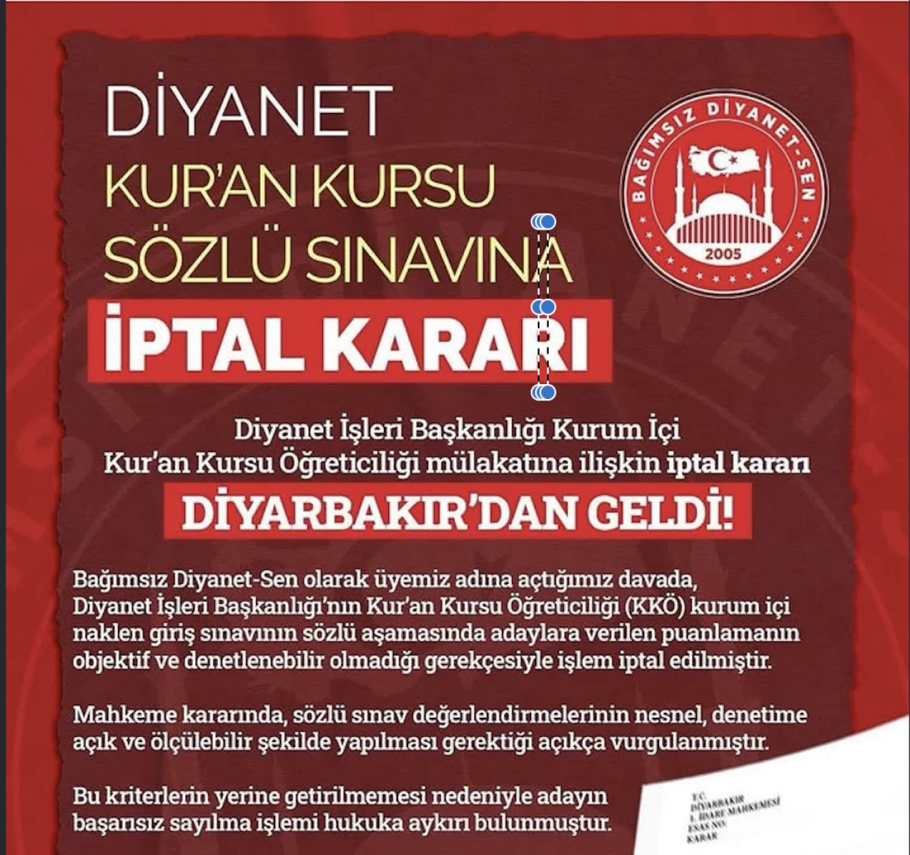 Mahkeme, Kur’an Kursu Öğreticiliği kurum içi giriş sınavının sözlü aşamasında, adaylara verilen puanlamanın objektif ve denetlenebilir olmadığı gerekçesiyle iptal etti.