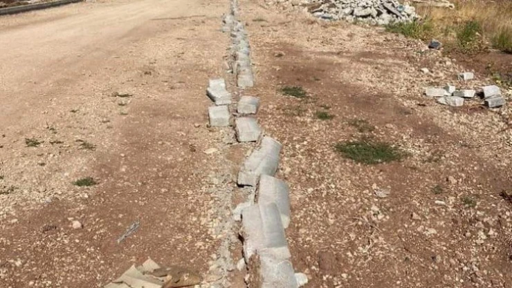 Adıyaman'ın Gölbaşı ilçesinde yol yapım çalışmaları sırasında döşenen bordür taşlarına zarar verildi.