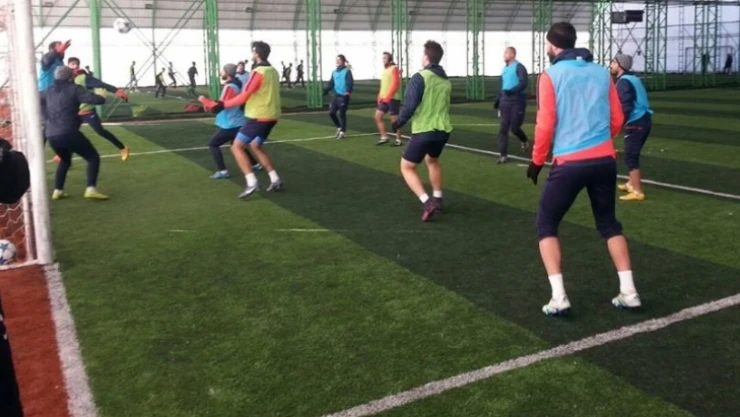 Sivas Yolu üzerinde bir halı sahada Teknik Direktör İsmail Tekin yönetiminde tam kadro yapılan idmanda mavi beyazlı oyuncular dar alanda taktik ağırlıklı çift kale maç yaptı.