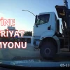 O anlar otomobilin araç içi kamerasına yansırken, kamyonun kontrolsüz biçimde kavşağa girmesi tehlikeli anların yaşanmasına neden oldu. Görüntülerde, otomobil sürücüsünün kaza riski yaşamamak için ani fren yaptığı görüldü.